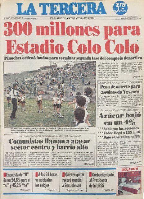 Lasportadasdetuvida Tren Twitter 1988 Oct 1 Augusto Pinochet Entregaba 300 Millones Para Terminar Las Obras Del Estadio Monumental Conrespeto Lasportadasdetuvida Https T Co Gfecfx3bsb